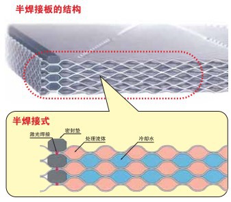 半焊式板式換熱器是一種用兩張板片沿密封槽采用激光焊焊接成板片,把板片對用密封墊密封,以疊加的形式夾裝在固定壓緊板、活動壓緊板中間的換熱器。