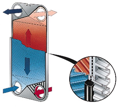 該設備使用的是盒式板片組技術不是普通的板片。每一板片組中,無危險的介質流動在墊片側,有危險的介質流動于焊接板中間。通過交替的墊片和焊接的流程組合,保證介質不會混合。有獨特的密封系統,用于高壓和真空應用中。焊接側有一個定制的,防損傷的環形墊圈。我們的半焊接板換熱器有很長的產品壽命,并提供安全、無泄漏的操作,大大降低了暴露的墊圈面積。